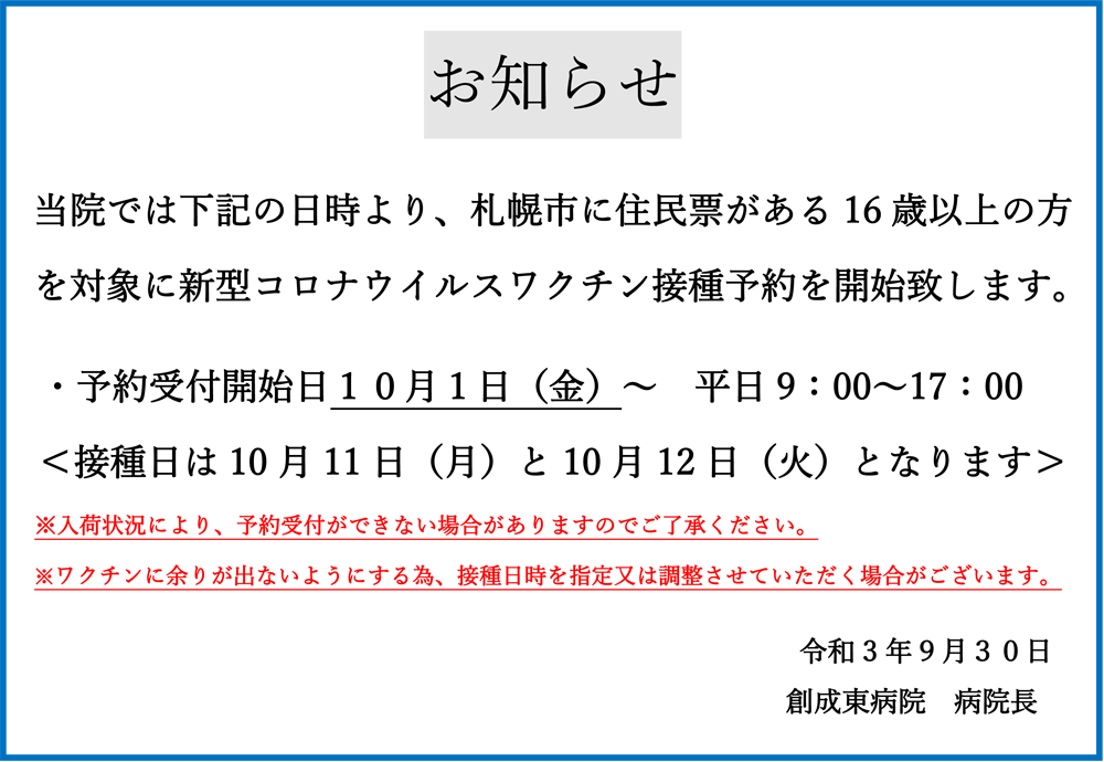 新型コロナウイルスワクチン接種予約終了のお知らせ
