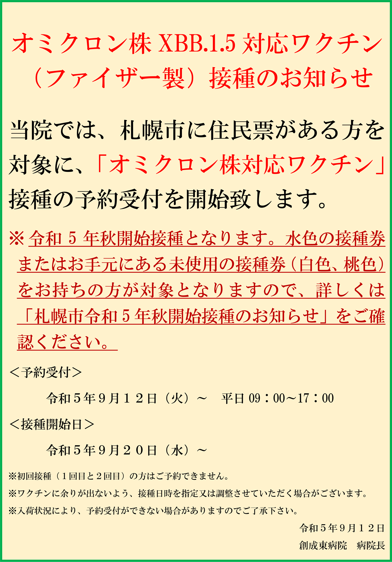 オミクロン株対応ワクチン(ファイザー製)秋接種のお知らせ